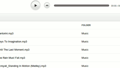 Upon clicking DriveTunes, a new tab will open with the files you have selected listed in the middle, and a big set of playback controls on top (Play/Pause, Next and Volume). Click on an audio file’s title, and it should begin playing. Note that a speedy Internet connection is crucial for uninterrupted playback.